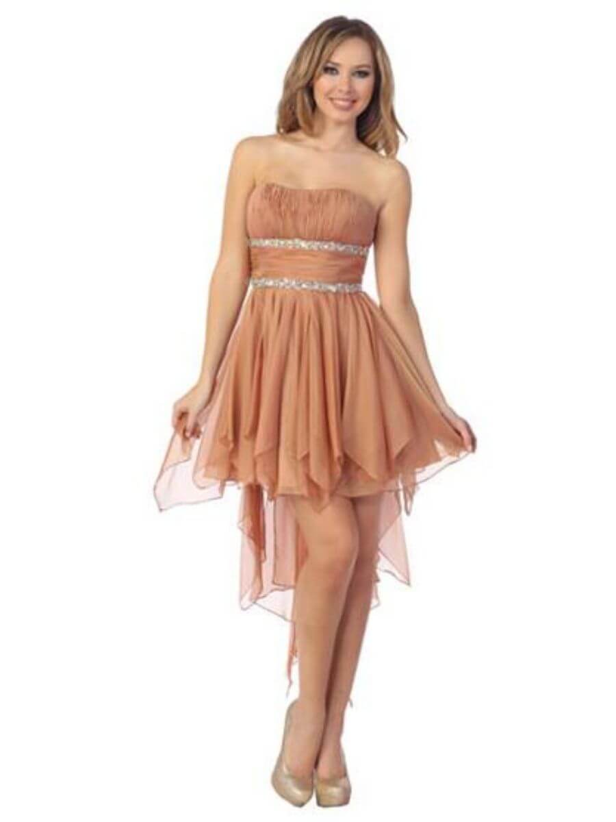 EY5456-LF Strapless Chiffon High Low Evening Gown M/SA34