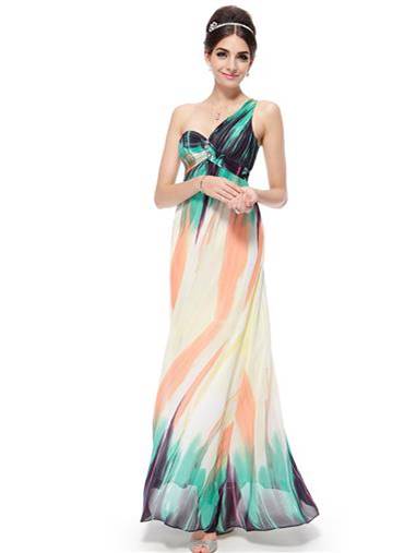 EY8008-EP-PP-IS One Shoulder Ruched Pastel Print Long Evening Gown SA30 US6