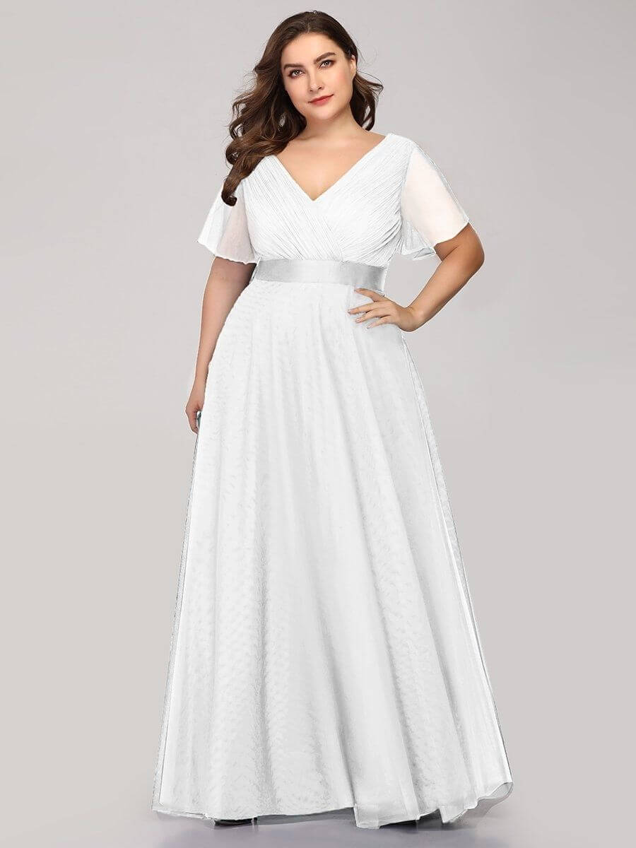 EY7962-EP-WG V-Neck A-Line Floor Length Wedding Gown
