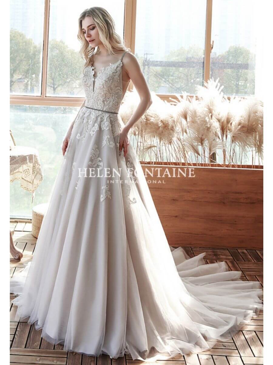 EY4183-HF Helen Fontaine V-Neck A-Line Wedding Gown