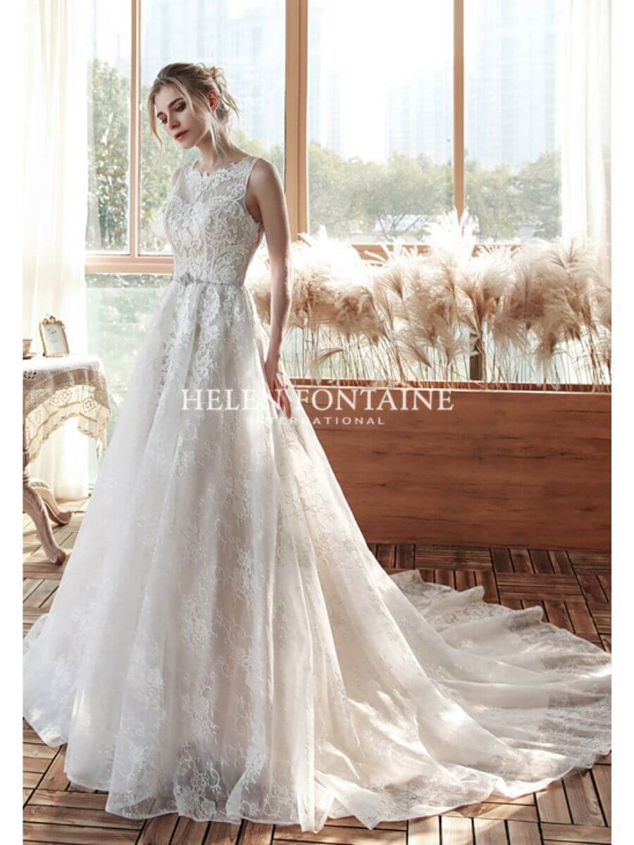 EY4186-HF Helen Fontaine Lace Wedding Gown with Beaded Belt