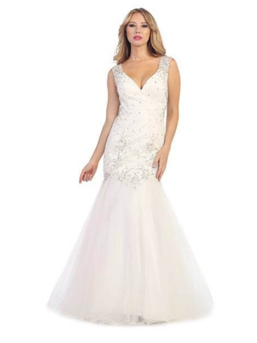EY5650-LF-IS Mermaid Diamante White Long Gown SA34 Small
