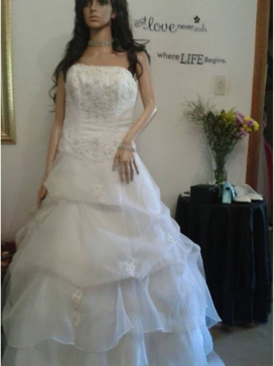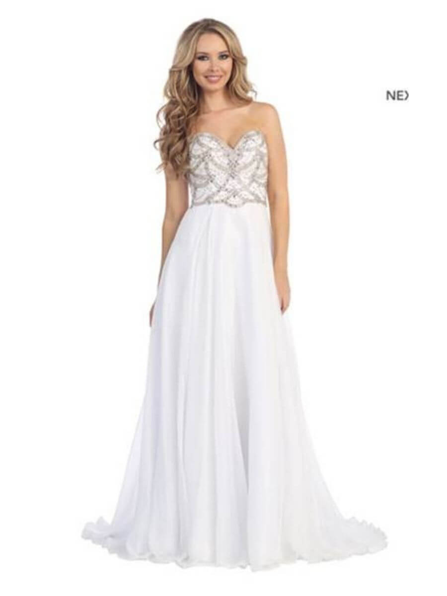 EY5852-LF Strapless Gold Decorative Bodice White Gown SA36/Large