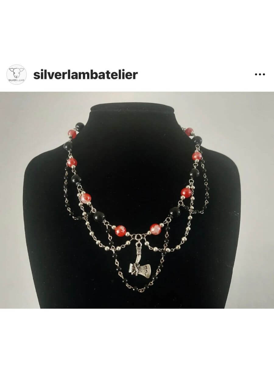 Bloodlust Necklace R350. Stainless steel, glass pearls and glass crystal.