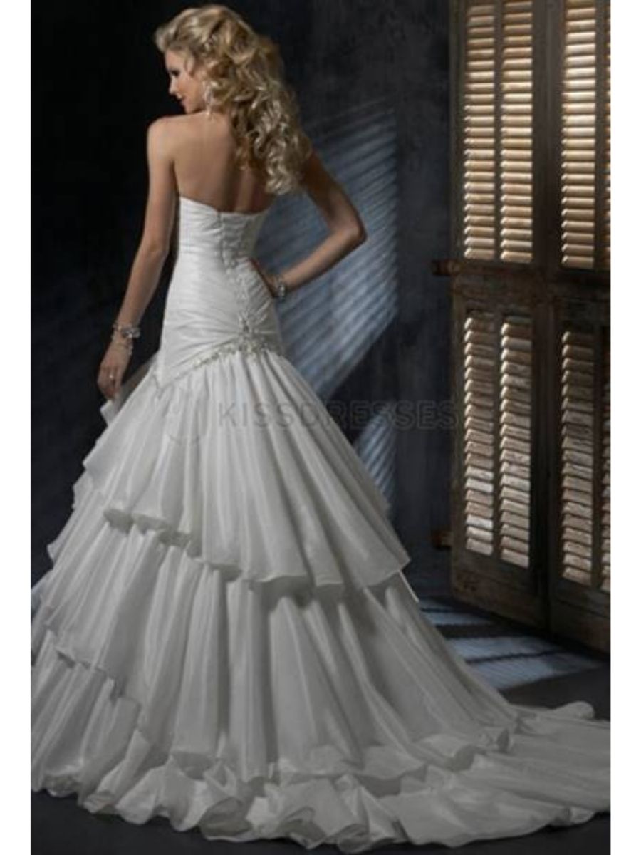 Stunning Taffeta Ivory Wedding Gown with Ruffled Skirt SA32 US8
