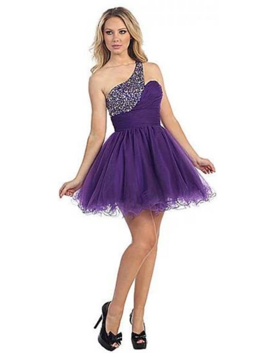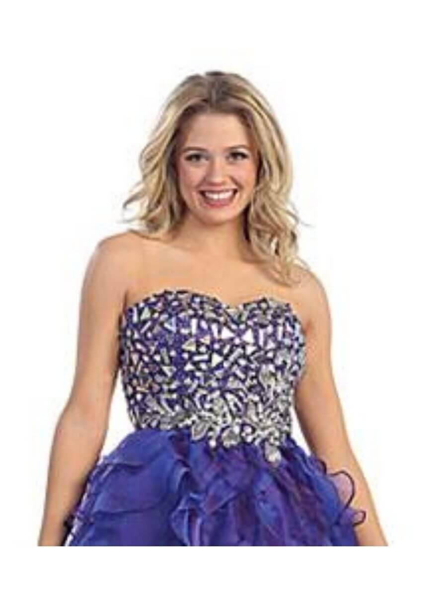 | Style | EY5372-LF Strapless Diamante Encrusted Bodice Purple Short Evening Gown S |