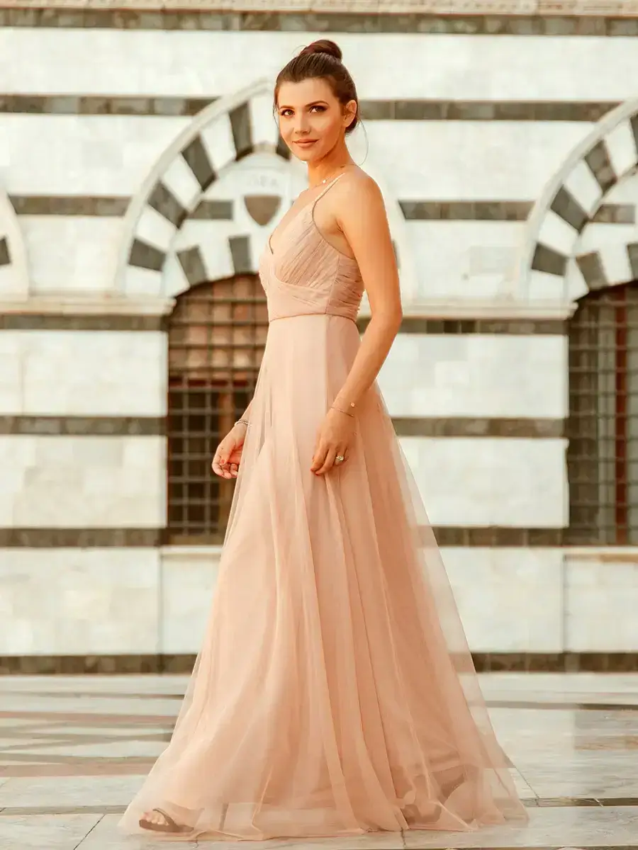 This lovely flowy long tulle evening gown. The delicate ruching in the top creates a figure-flattering silhouette and the spaghetti straps are adjustable to ensure a perfect fit. Suitable for the any evening, party, matric farewell, graduation, weddings and any other formal affair!