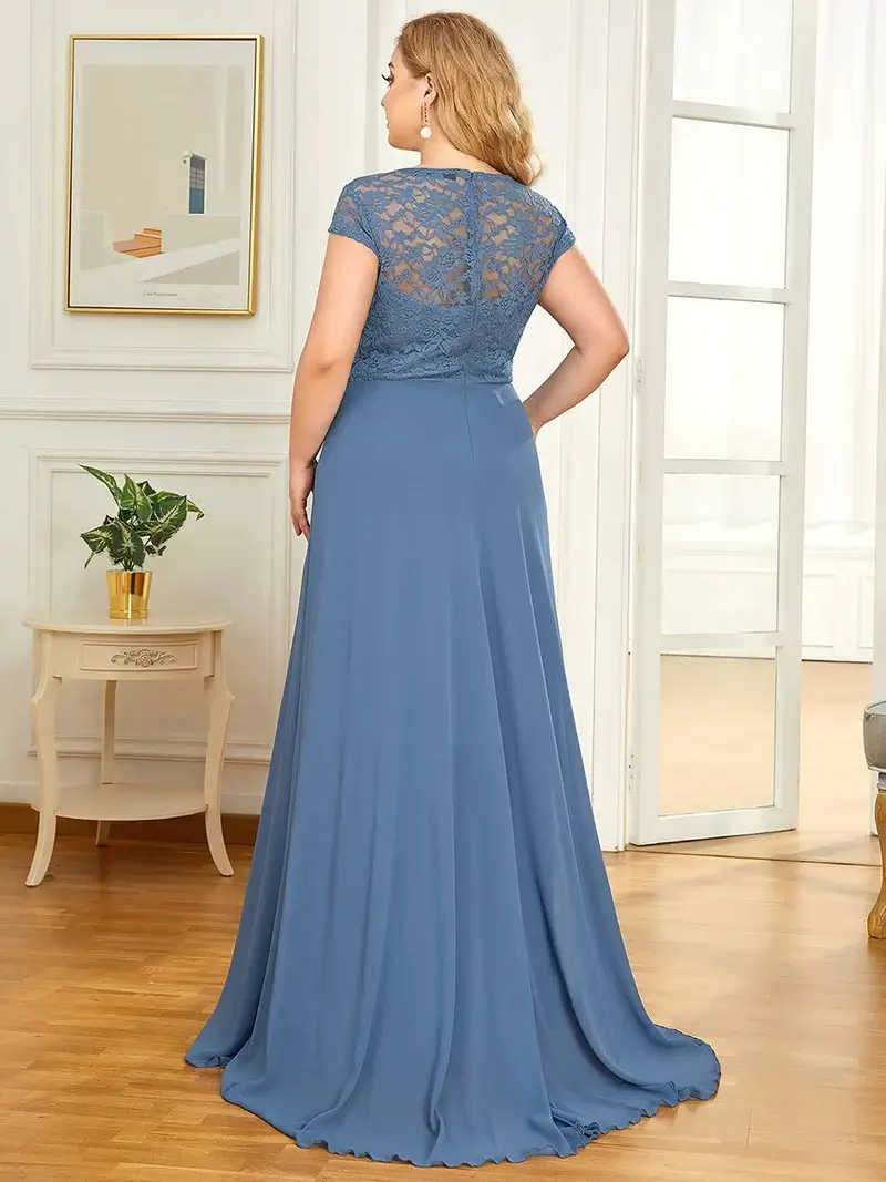 Featuring a deep sweetheart neckline, lace cap sleeves and a flowy A-line skirt, this gorgeous evening gown is sure to be your closet staple for years to come. Perfect for evening party, cocktail, matric farewell, mother of the bride, mother of the groom, graduation, weddings and any other formal affair!