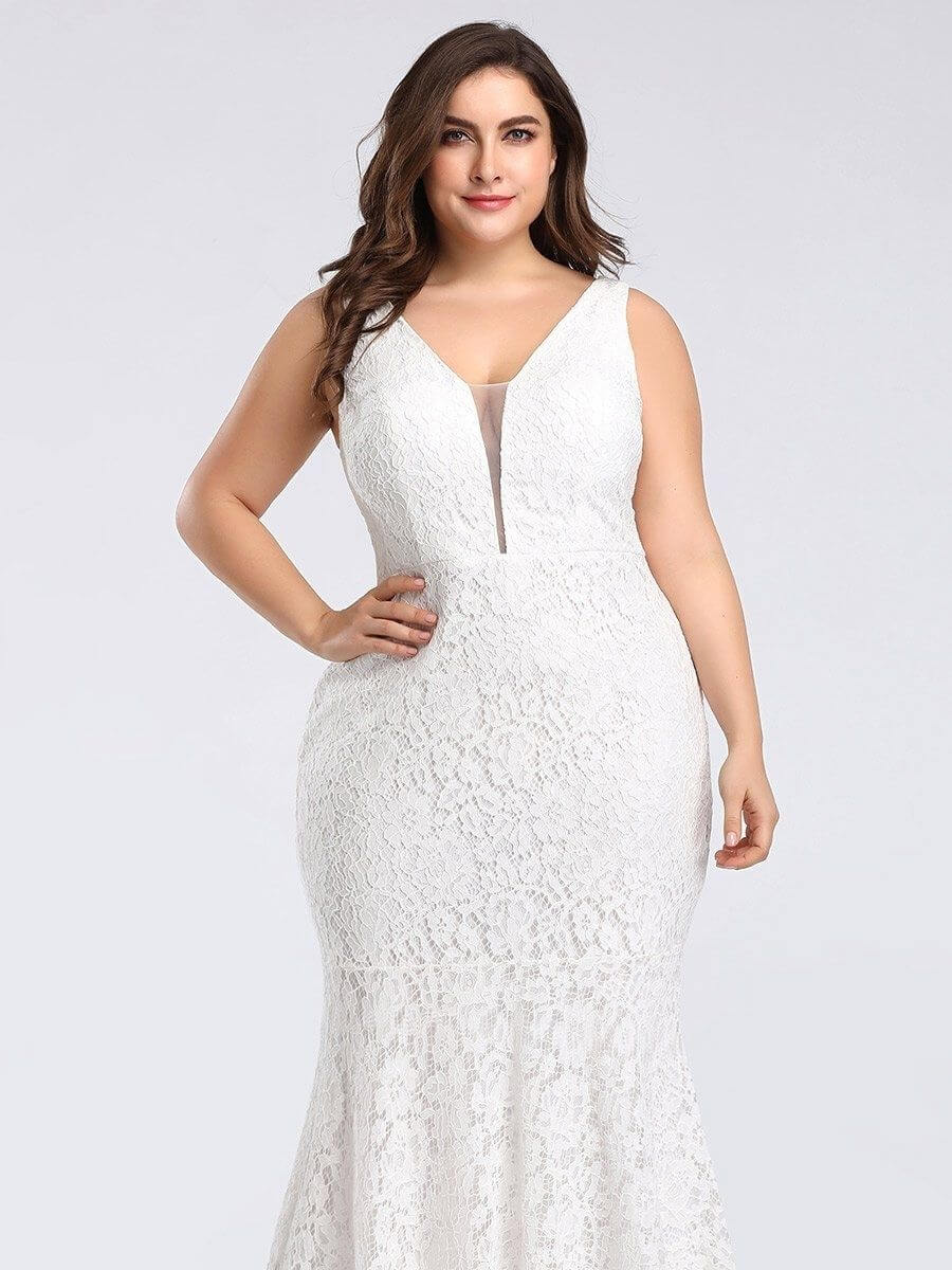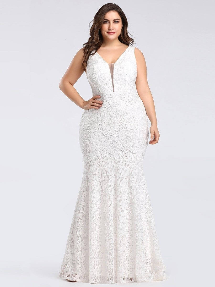 This lace wedding gown features a double deep V neckline and a mermaid skirt which is designed to hug your curves. You’re sure to make a statement no matter where you wear it! Perfect for evening party, cocktail, matric farewell, graduation, weddings and any other formal affair!